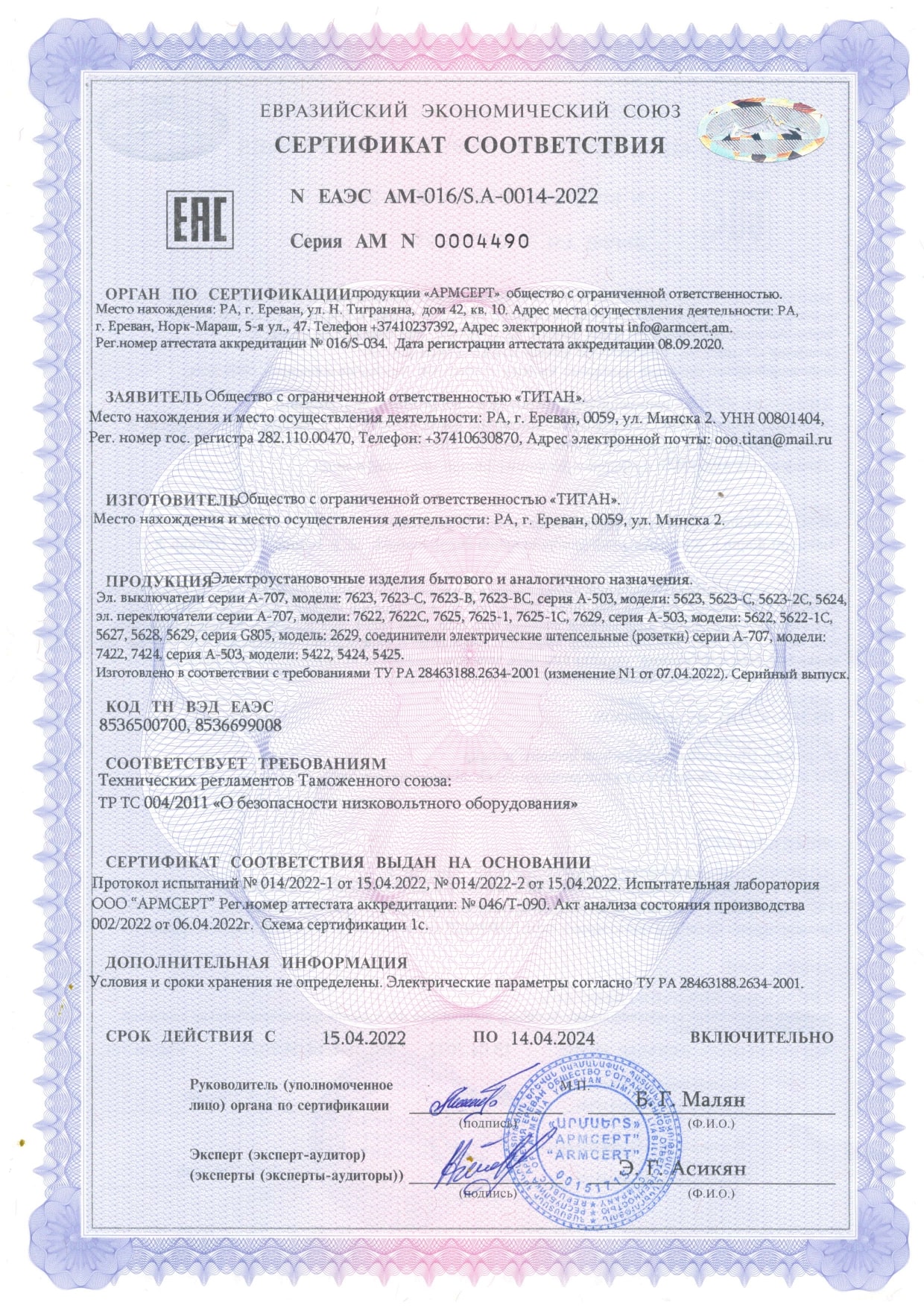 2018 թվականից սկսվել է նոր A-503 սերիայի (գերմանական ստանդարտ) արտադրությունը։ «A-503» սերիան օգտագործում է «G- 805» շարքի մեխանիզմները, որոնք իրենց գործունեությունն ապացուցել են 2000 թվականից։ “A-503” շարքի կոճակների և ծածկույթների շրջանակների ժամանակակից դիզայնը թույլ է տալիս Ձեր բնակարանի, տան կամ գրասենյակային տարածքի դիզայնը դարձնել յուրահատուկ և առանձնահատուկ: